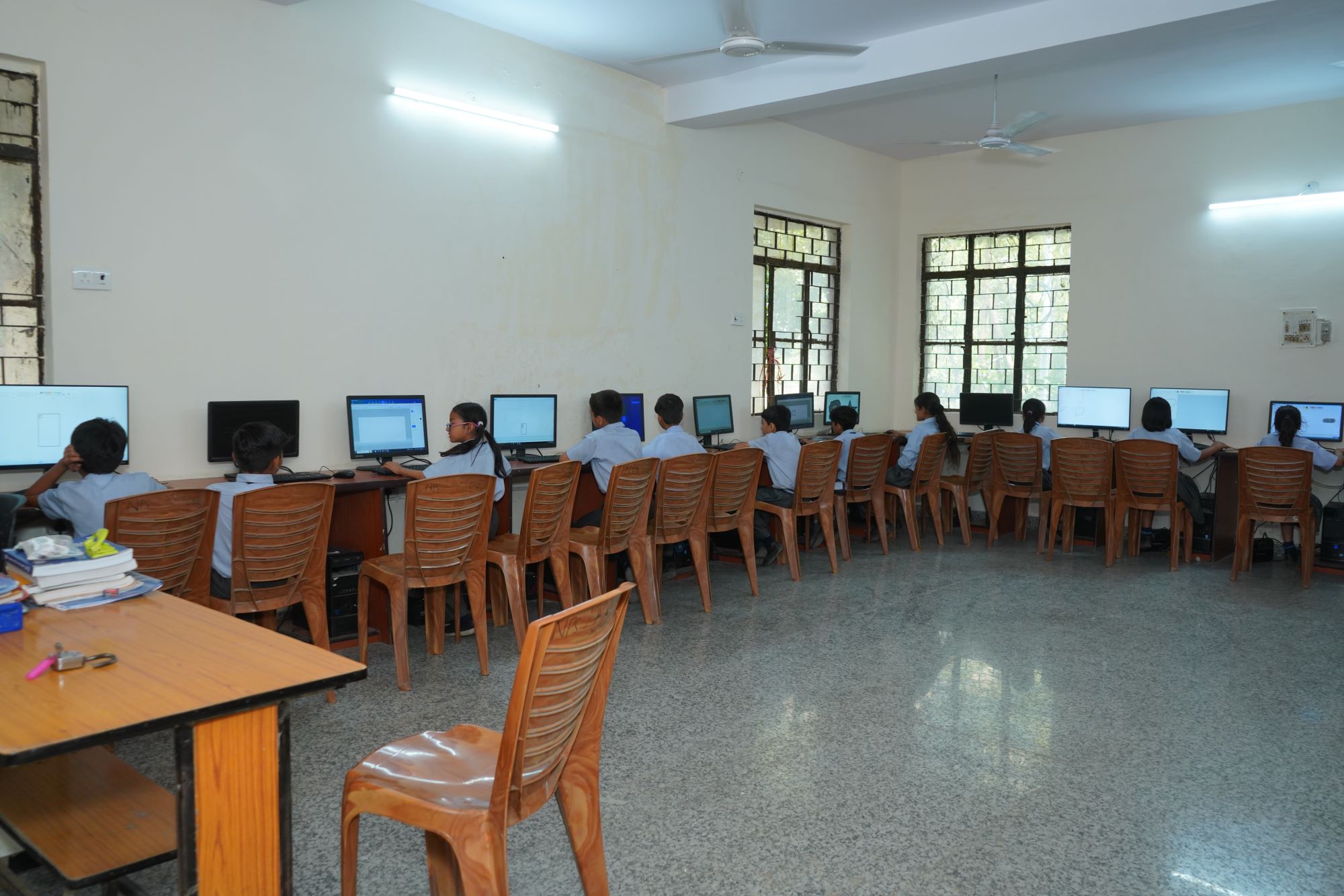 The computer lab of our school is equipped with Multimedia Systems, LCD monitors, Supervised, Fast Internet Connection round the clock, online UPS for system back up and Networking environment. A vast collection of educational softwares, catering to various subjects for the use of teachers and the students. The exposures provided to the learners is maximized by the use of computers with broadband e-connectivity & Wi-Fi which facilitated learning process. Our lab is equipped with 25 computers. Each child has his / her own workstation to practise.